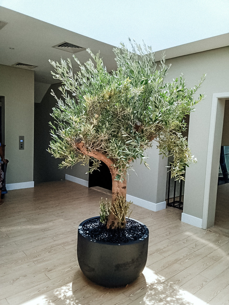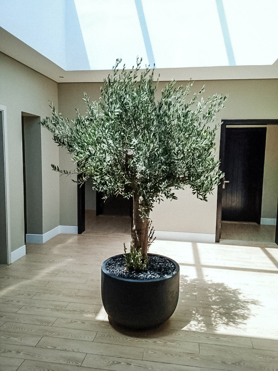 Olive trees flourish in full sun, needing 6–8 hours of direct sunlight daily. Choose an open spot with maximum exposure. Since UAE can have strong dry winds, it’s wise to select or create a protected location to reduce dehydration