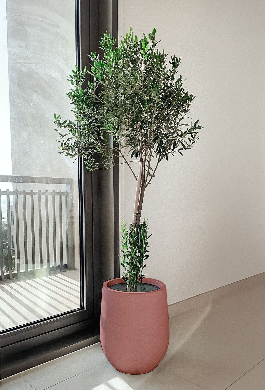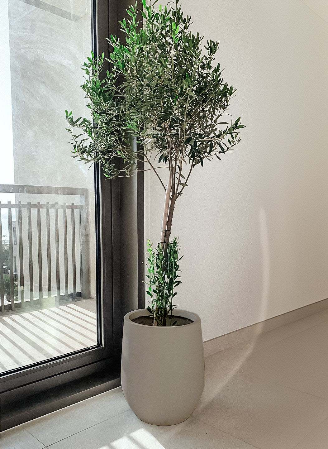 Olive Tree Thin Trunk in Fiber Clay Matte Pot 150-165cm