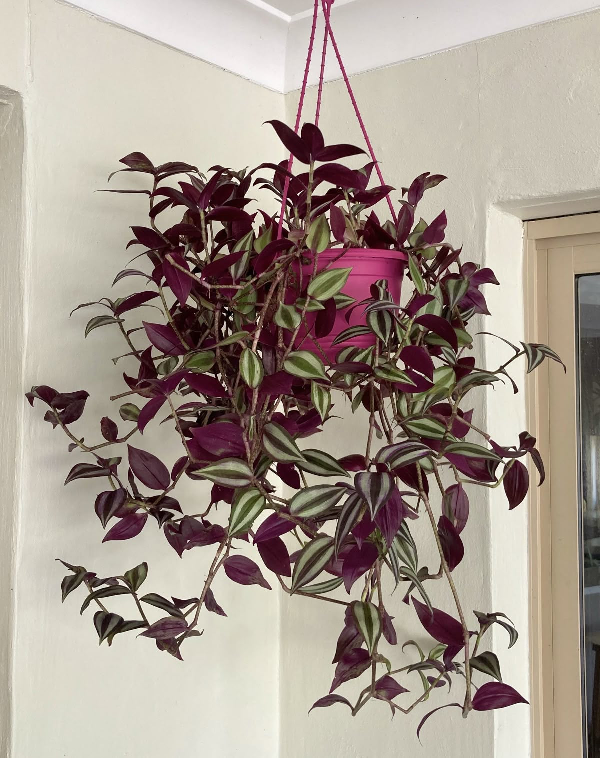 Tradescantia zebrina (a.k.a. Wandering Jew or Inch Plant) is a beautiful, fast-growing trailing plant known for its striking purple, silver, and green striped leaves. Here’s how to care for it: