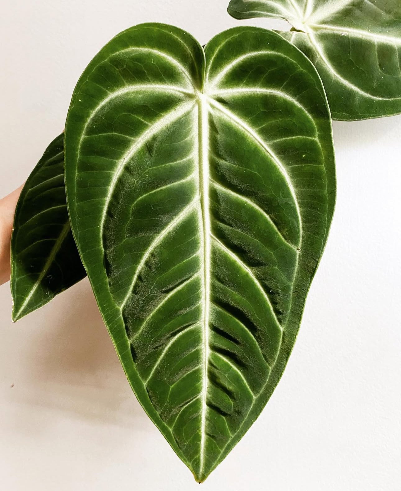 The Anthurium villenaorum is a stunning velvet-leaf species native to Peru. It’s admired for its thick, velvety leaves with bold, white venation. While it's easier to care for than some other velvet Anthuriums (like warocqueanum or crystallinum), it still thrives best with tropical conditions.