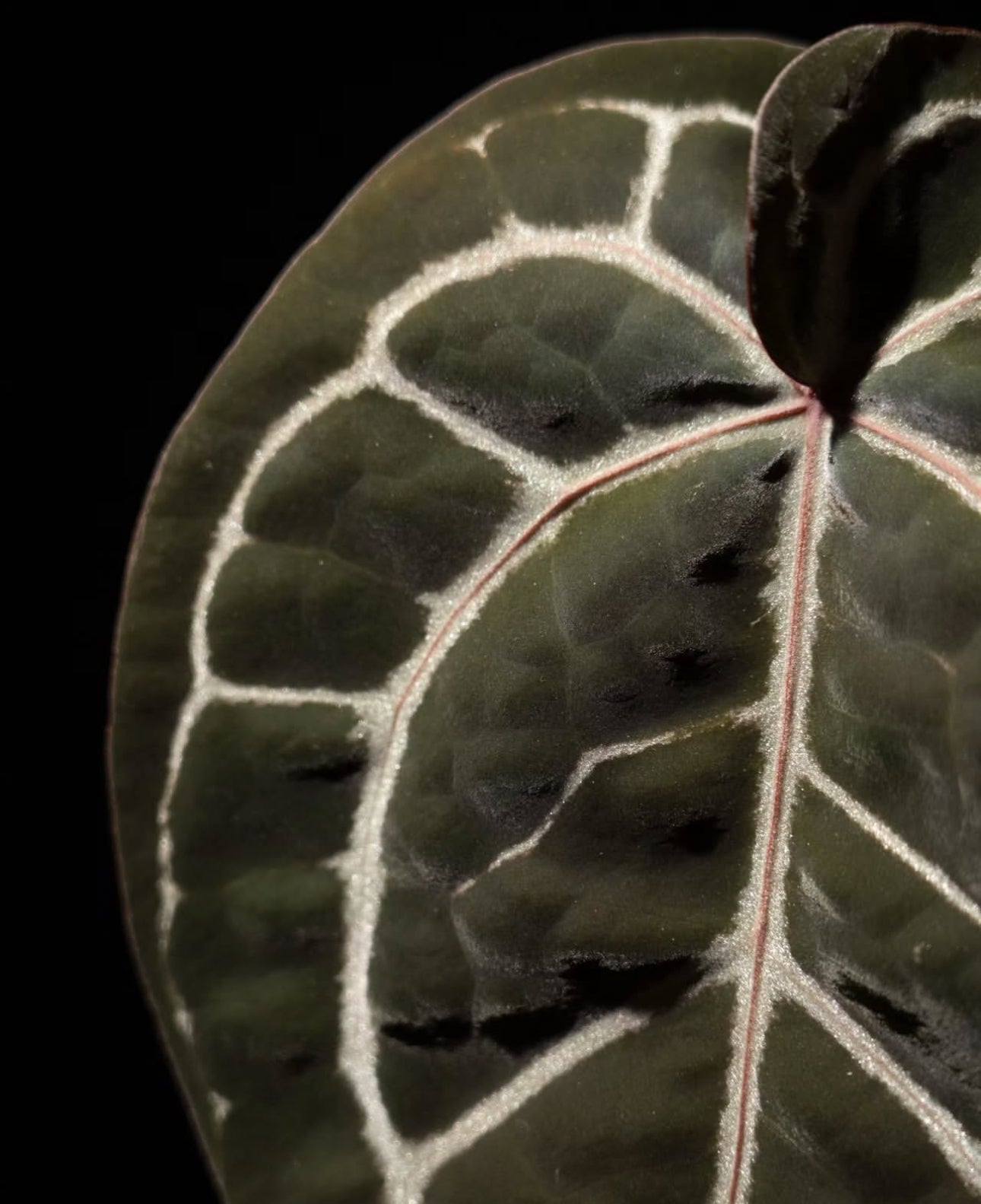 The Anthurium Zara x Michelle is a rare captivating hybrid known for its striking foliage.