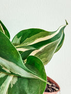 Philodendron 'Rio' is a rare and beautiful cultivar of Philodendron hederaceum (Heartleaf Philodendron), prized for its striped, variegated foliage. The leaves feature a striking combination of silver, cream, and green, often in a central stripe pattern. It’s a relatively easy-care trailing plant — perfect for shelves, hanging baskets, or climbing supports.
