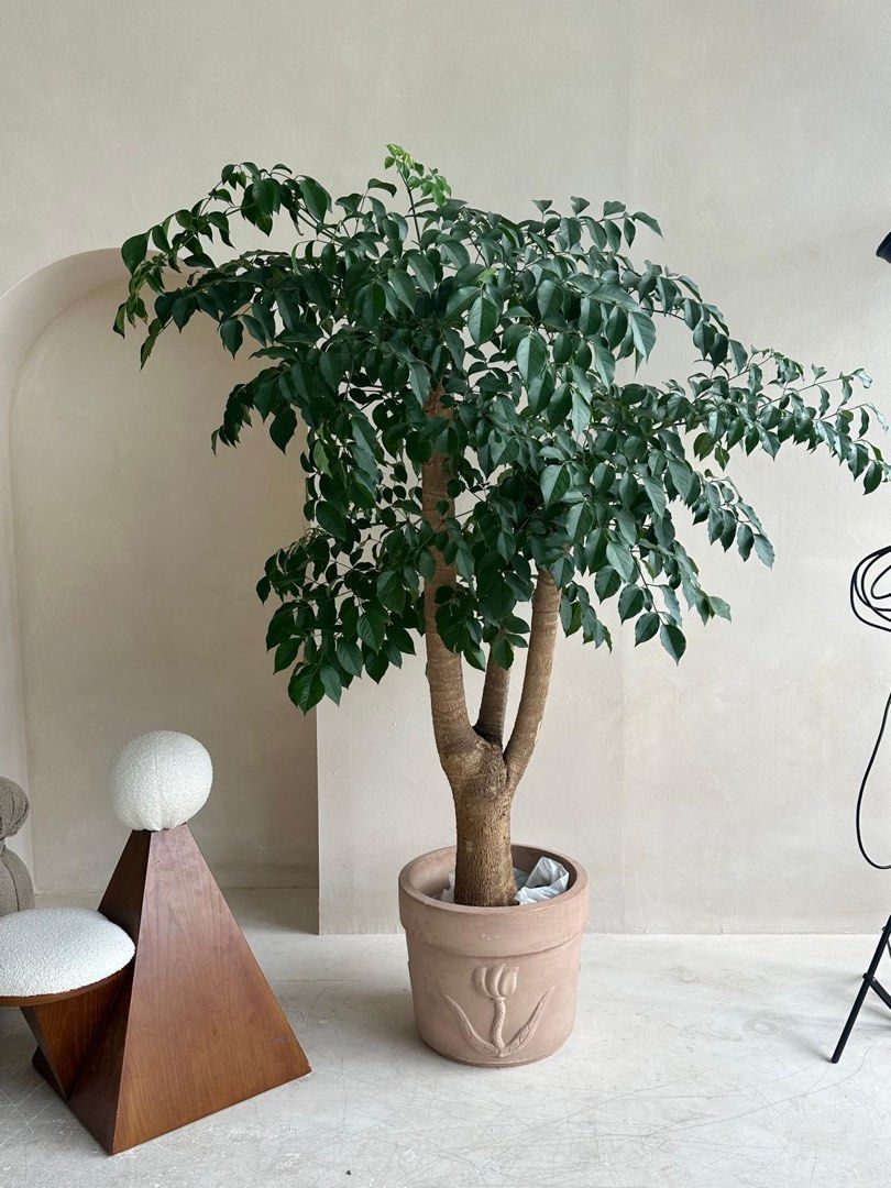 Appearance: It has shiny, dark green, leathery leaves that are compound and arranged in a palmate manner. The plant tends to grow upright and can reach a height of up to 4 to 6 feet indoors.