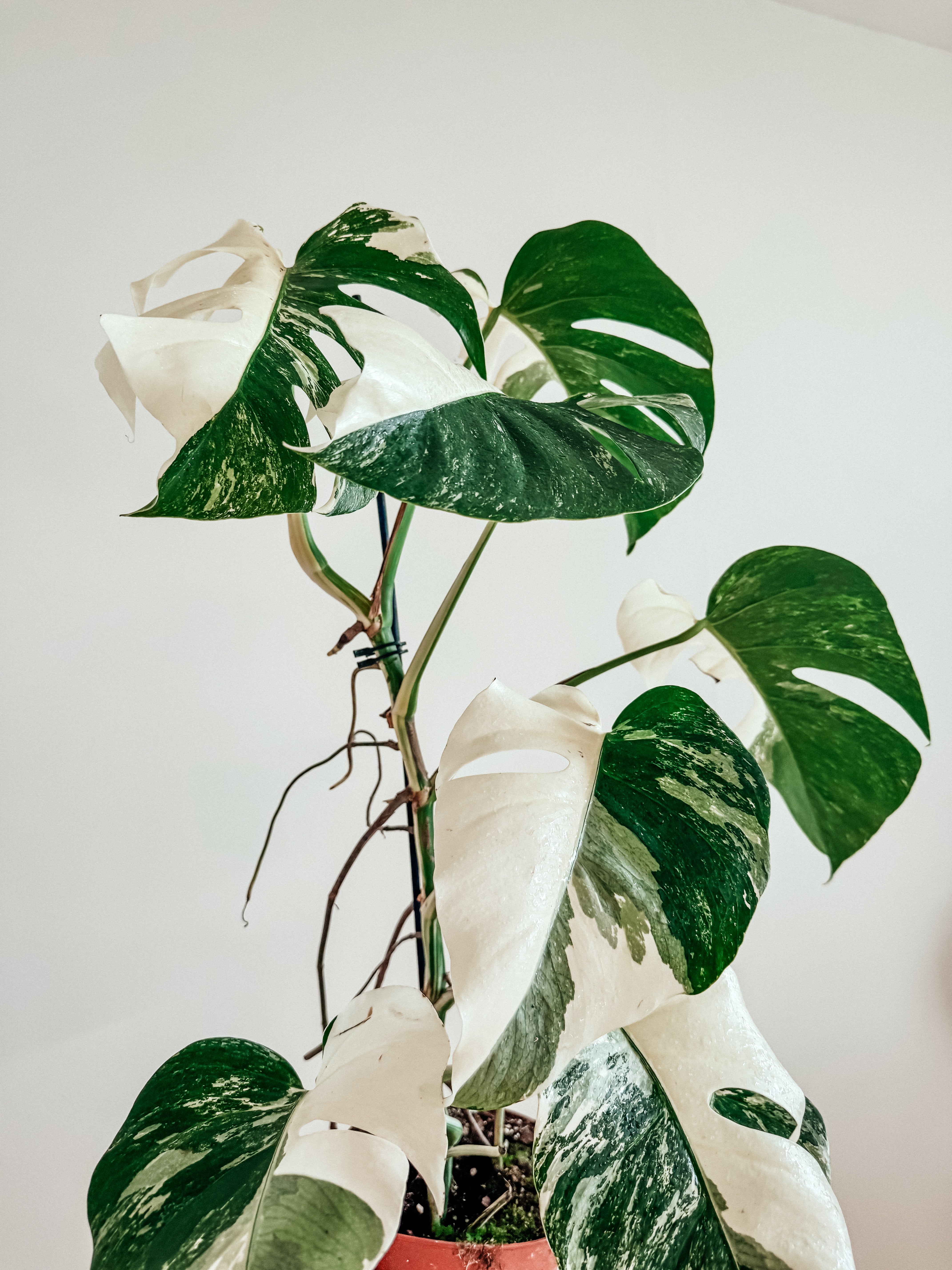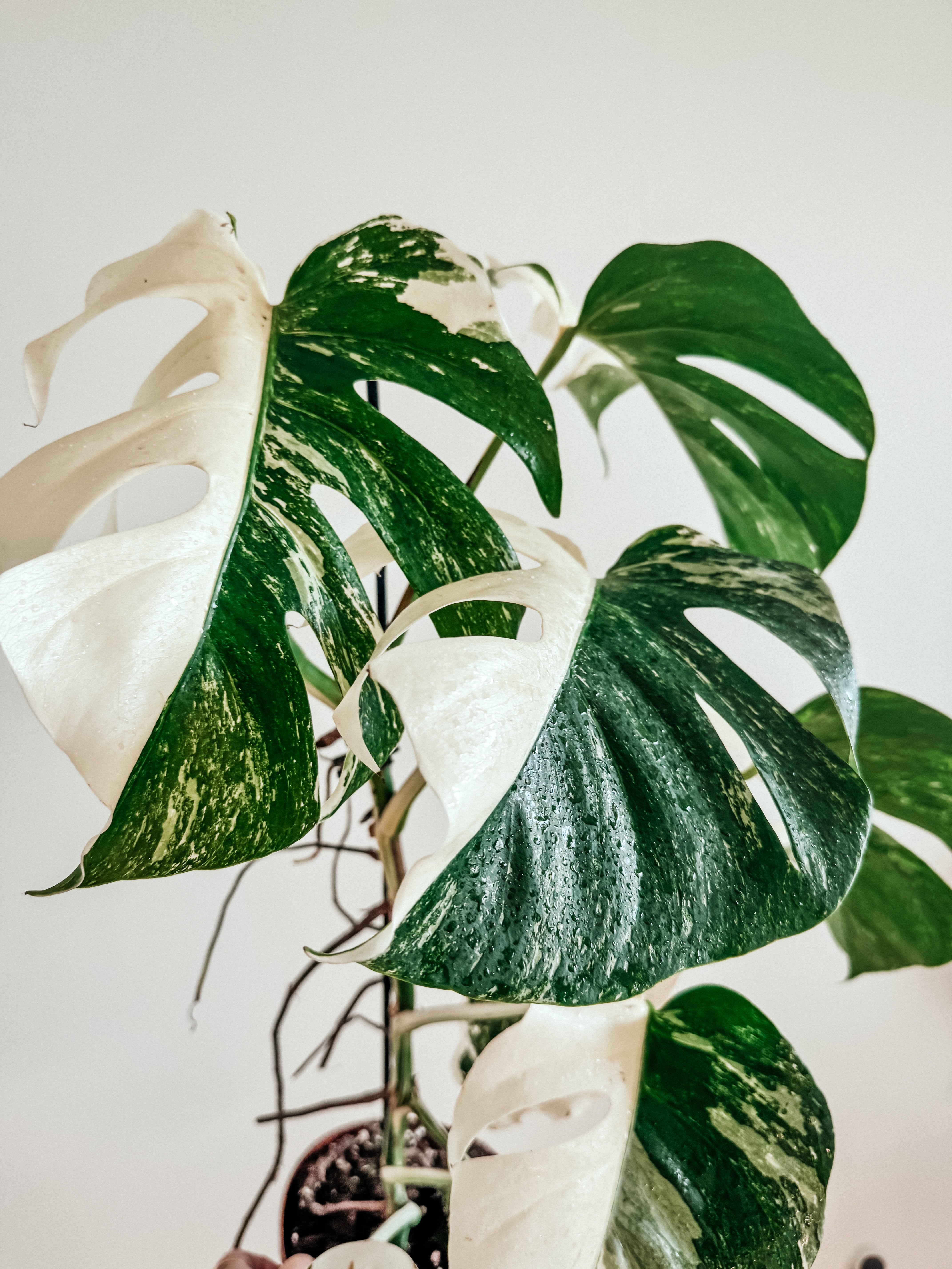 Because of the white or cream patches, this plant needs slightly different care than a regular green Monstera.