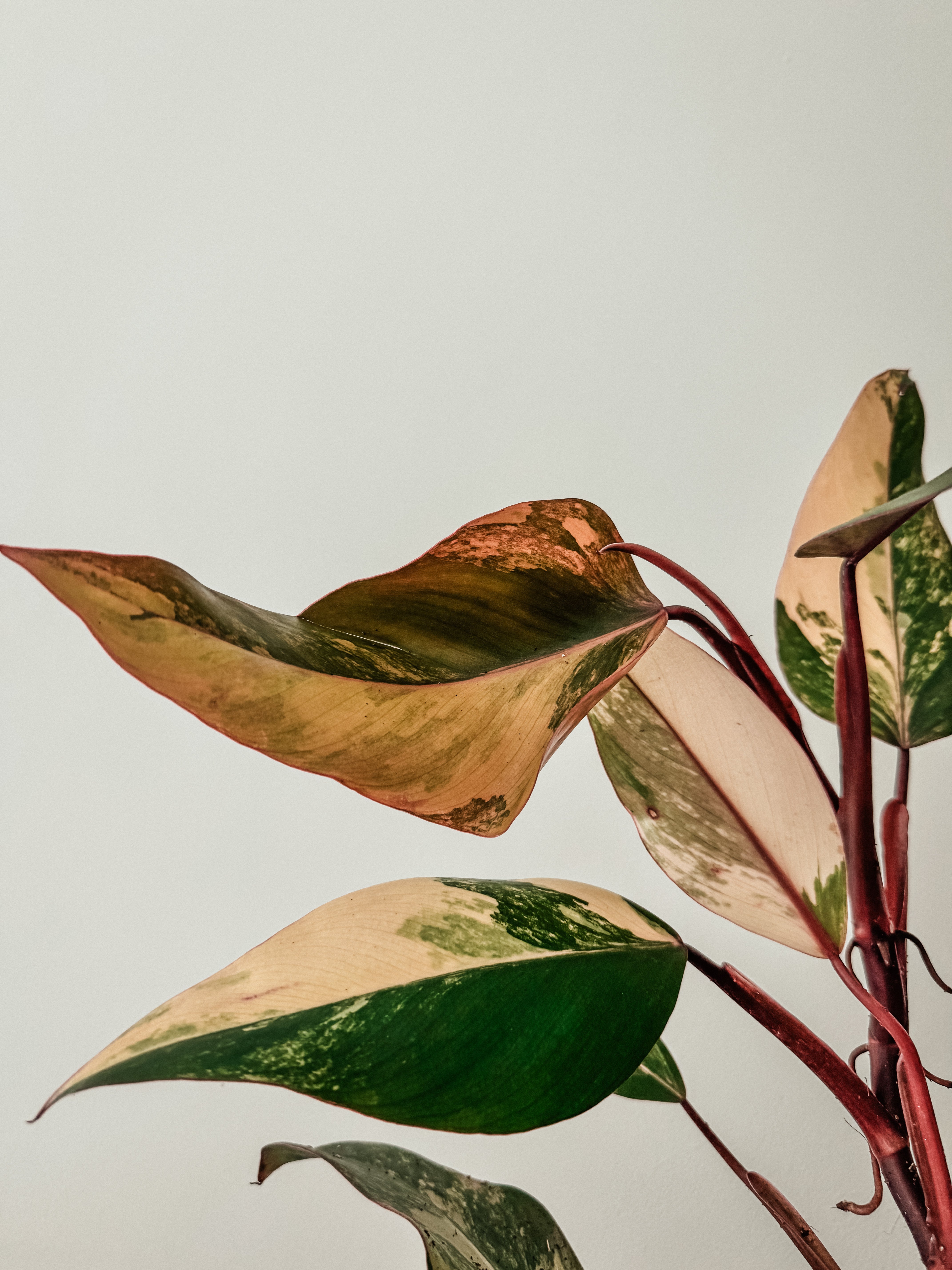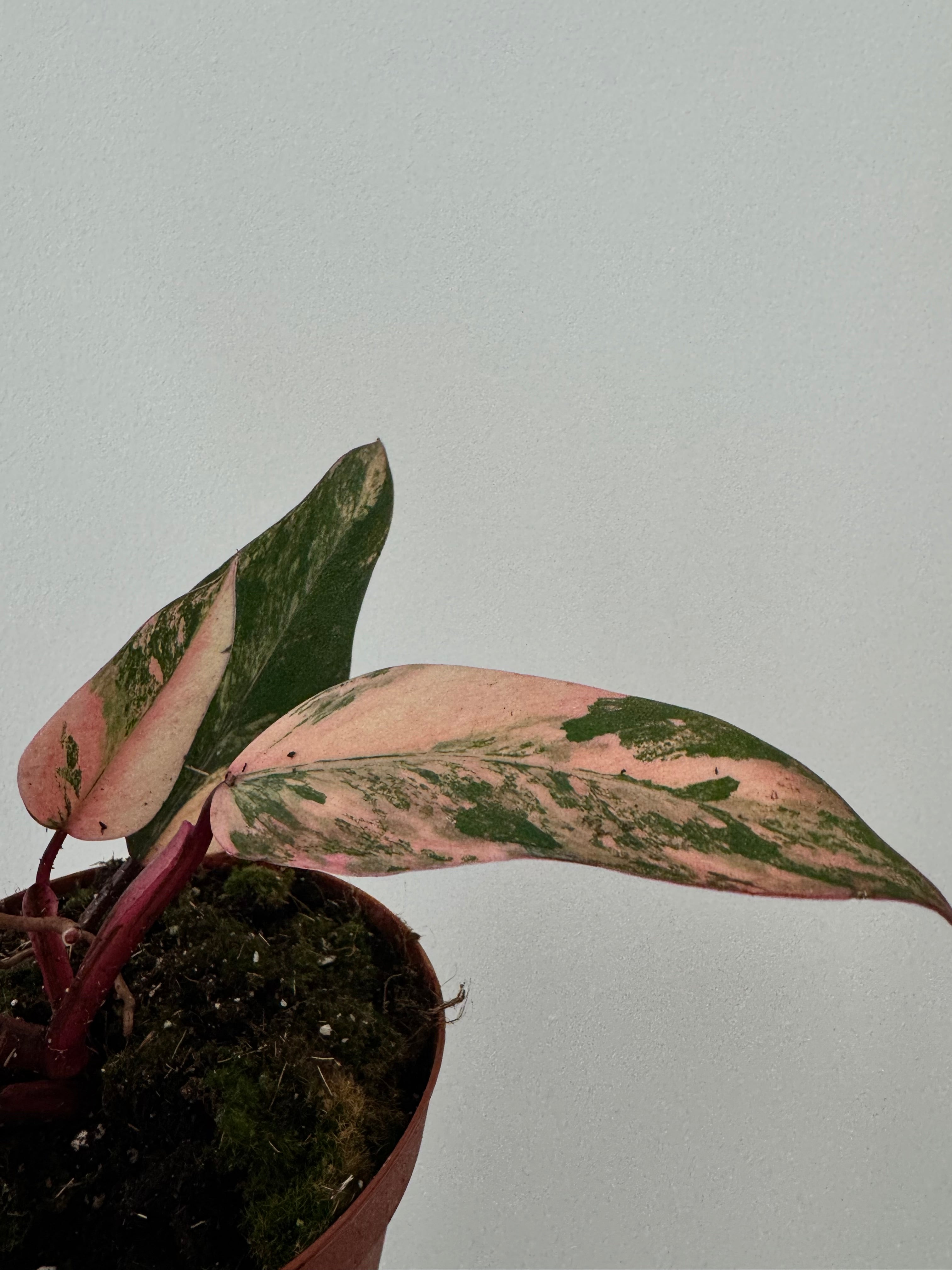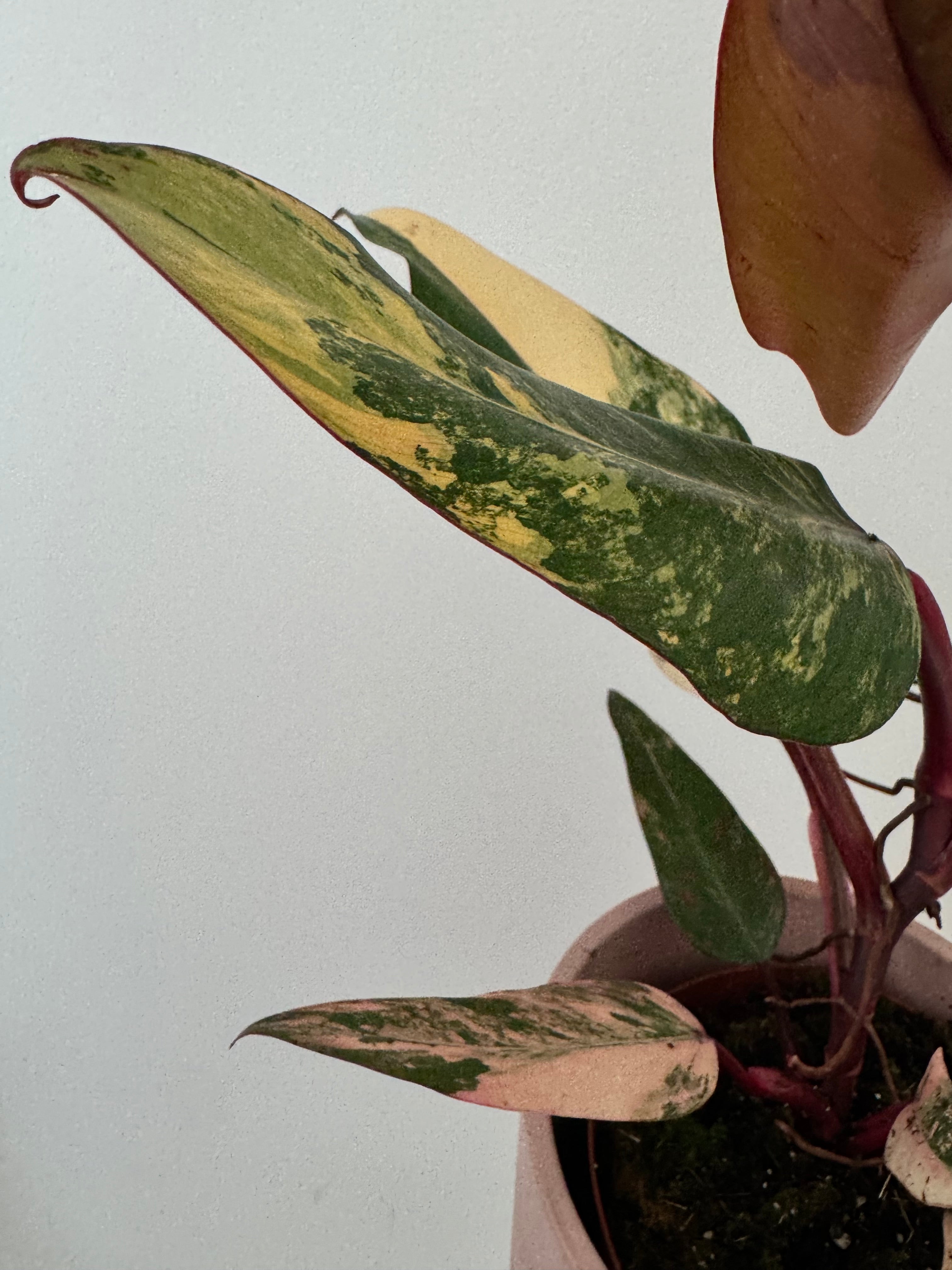 Philodendron ‘Strawberry Shake’, a rare, variegated climbing philodendron known for its pink, cream, yellow, and green foliage. Here’s a full care guide: