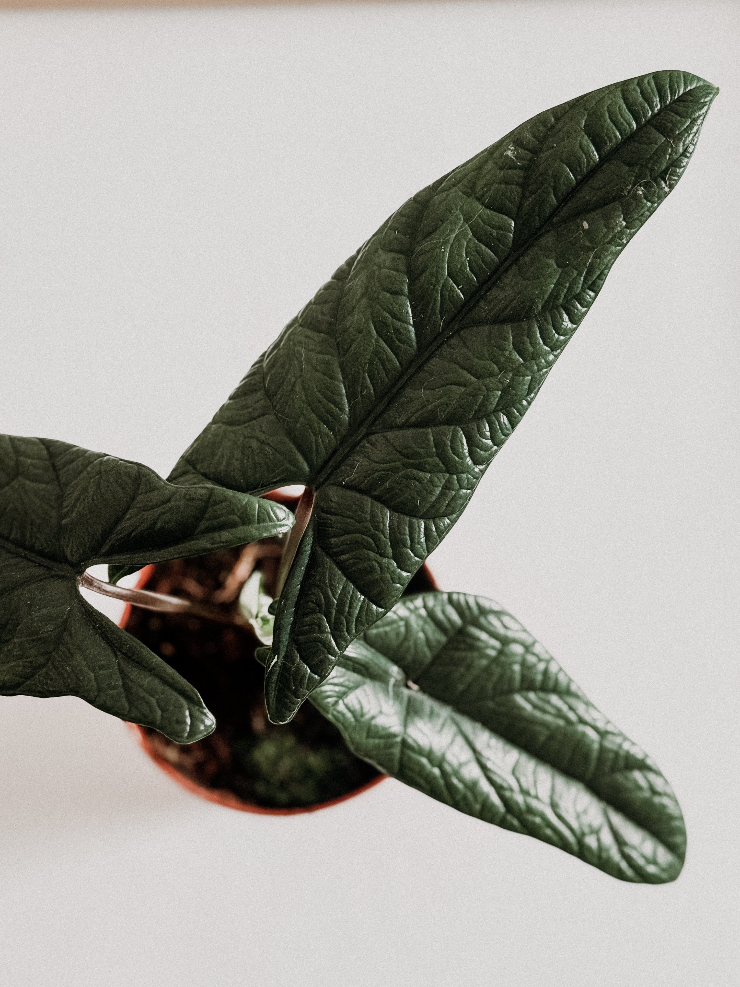 Alocasia scalprum 🌿—a rarer Alocasia with sleek, narrow, blade-like leaves: