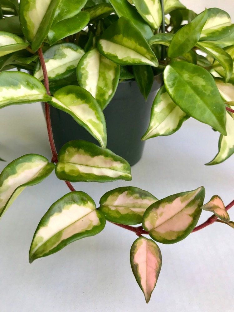 Hoya Carnosa Tricolor, also known as Crimson Princess is a draping succulent vine that produces clusters of star-shaped waxy flowers. I call them Plant Candies with its lemon, green and pink colors.
