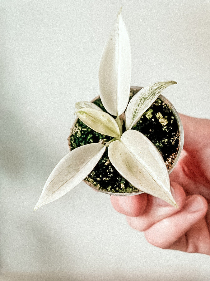 The Philodendron 'Florida Ghost Mini' is a charming and somewhat rare plant, known for its unique, ghostly white to light green foliage that gradually matures into darker green. Here’s a guide to help you care for this lovely plant: