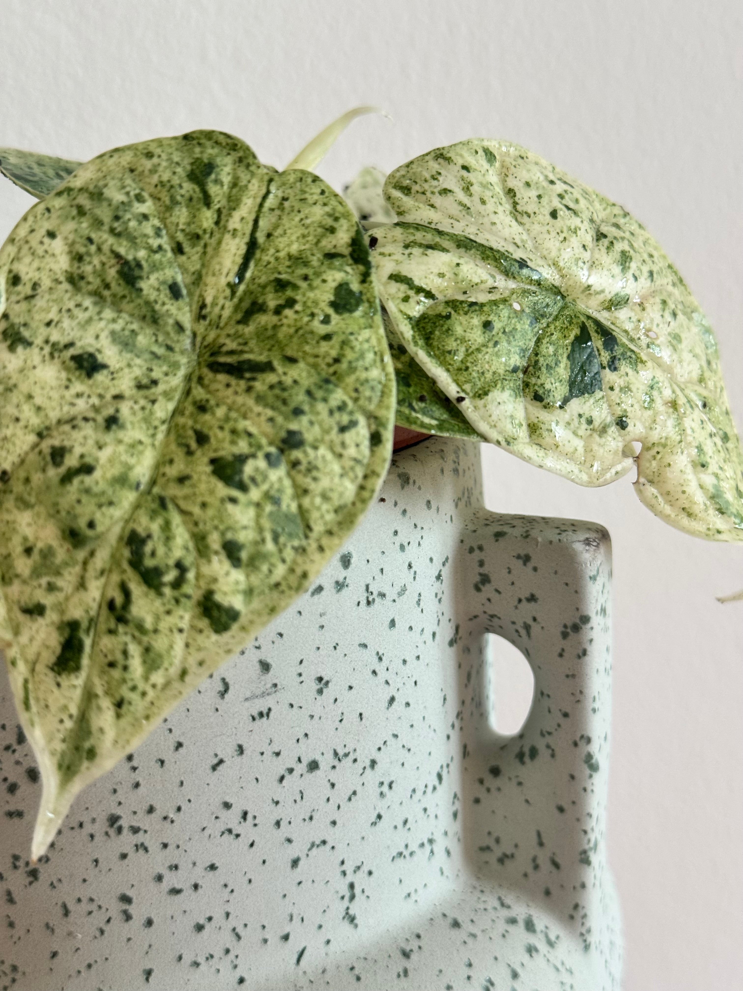 Alocasia 'Dragon Mint' is a stunning tropical plant known for its dramatic arrowhead-shaped leaves with minty-green variegation and deep veins. It's a relatively new and rare variety, and like most Alocasias, it thrives under specific conditions. Here's how to care for it: