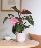 When provided good lighting the plant should eventually produce darker foliage with darker shades of pink as it matures. Please remember, that no direct sunlight should touch the plant’s leaves. If the plant will get too much light, the leaves will begin to turn yellow.