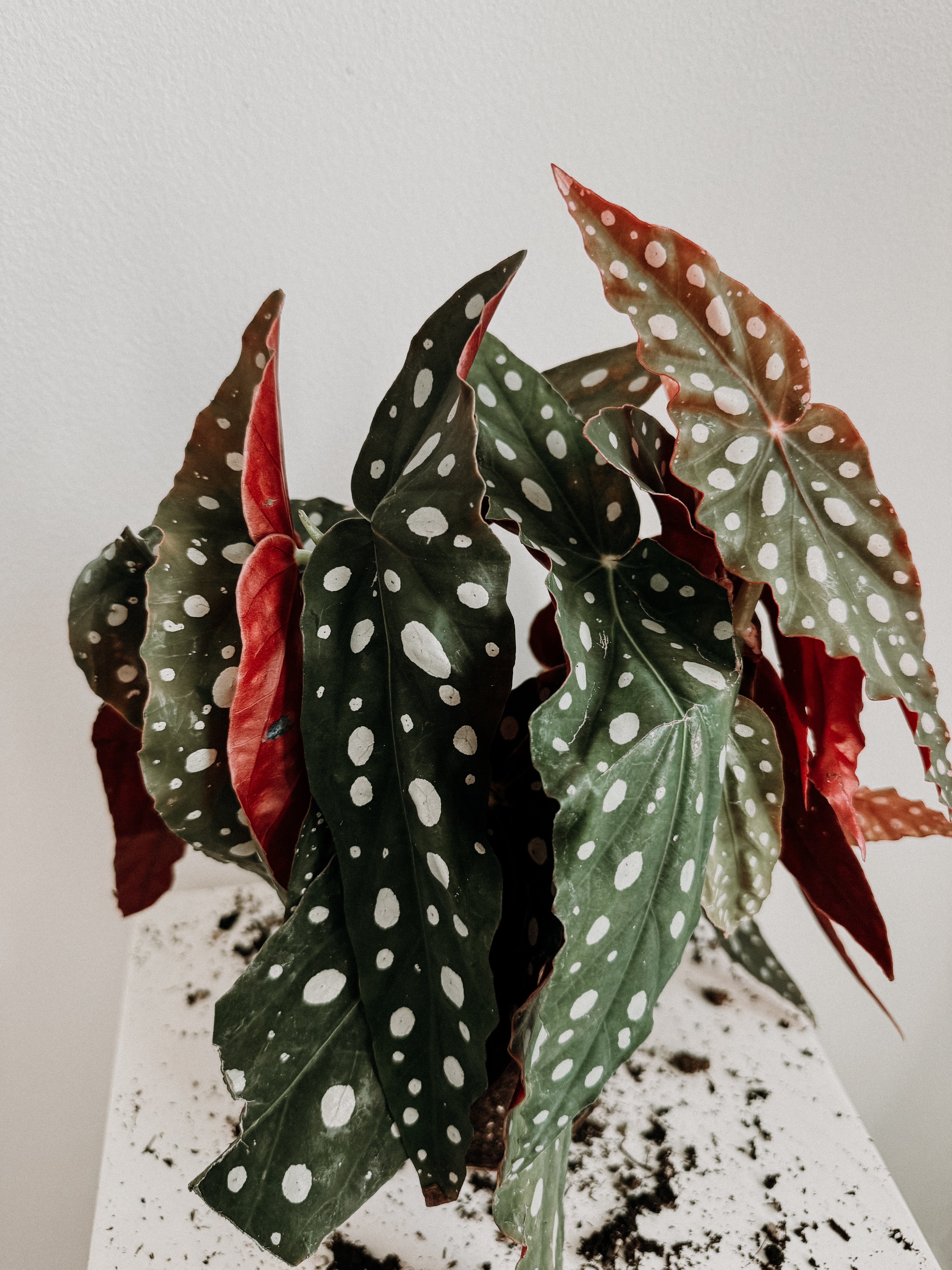 Begonia Maculata Wightii, also known as Polka Dot Begonia, is known for its dramatic curly dark green leaves with silver dots. It’s an upright-cane type begonia native to Brazil. I call this plant Dracula as it reminds me of its leaves resemble a bat's wings or Dracula's cape.