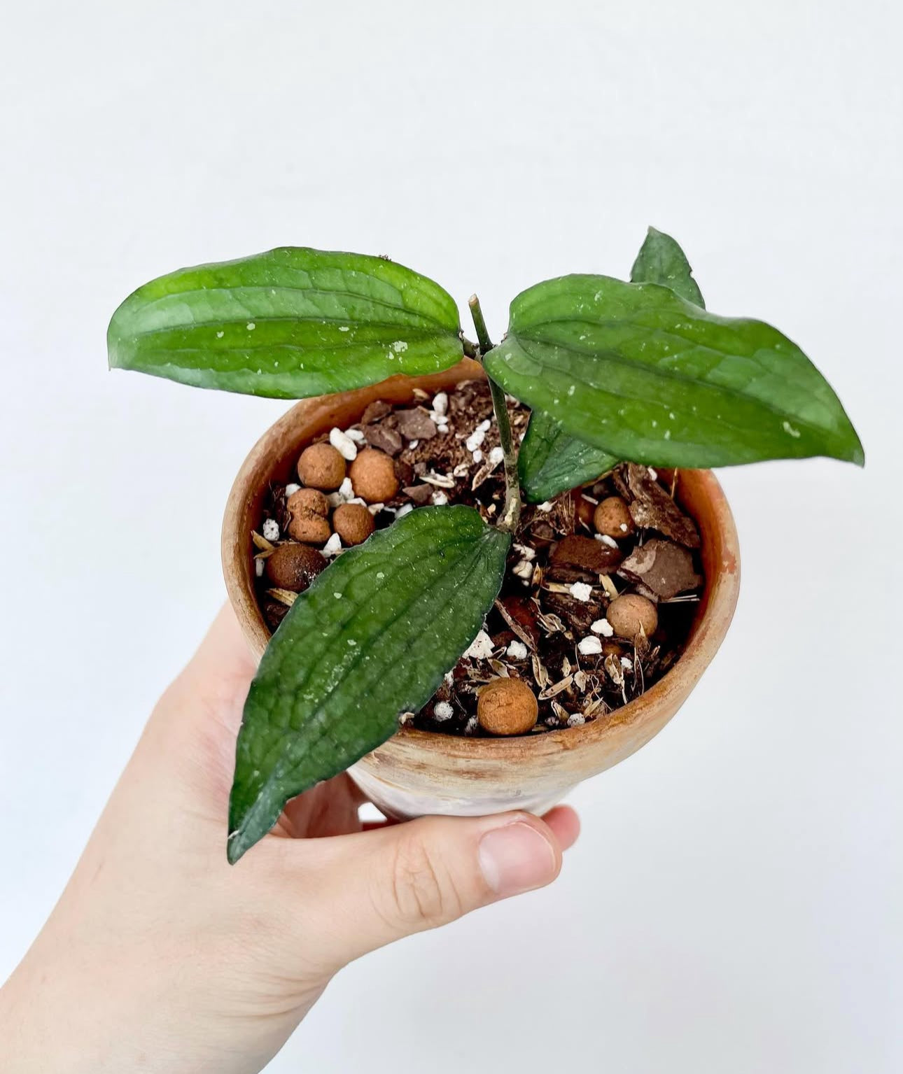 Hoya erythrina is a beautiful and somewhat uncommon species of Hoya with thick, slightly fuzzy leaves and striking clusters of star-shaped flowers. It’s an epiphytic tropical plant, so it thrives in conditions that mimic its native Southeast Asian environment.