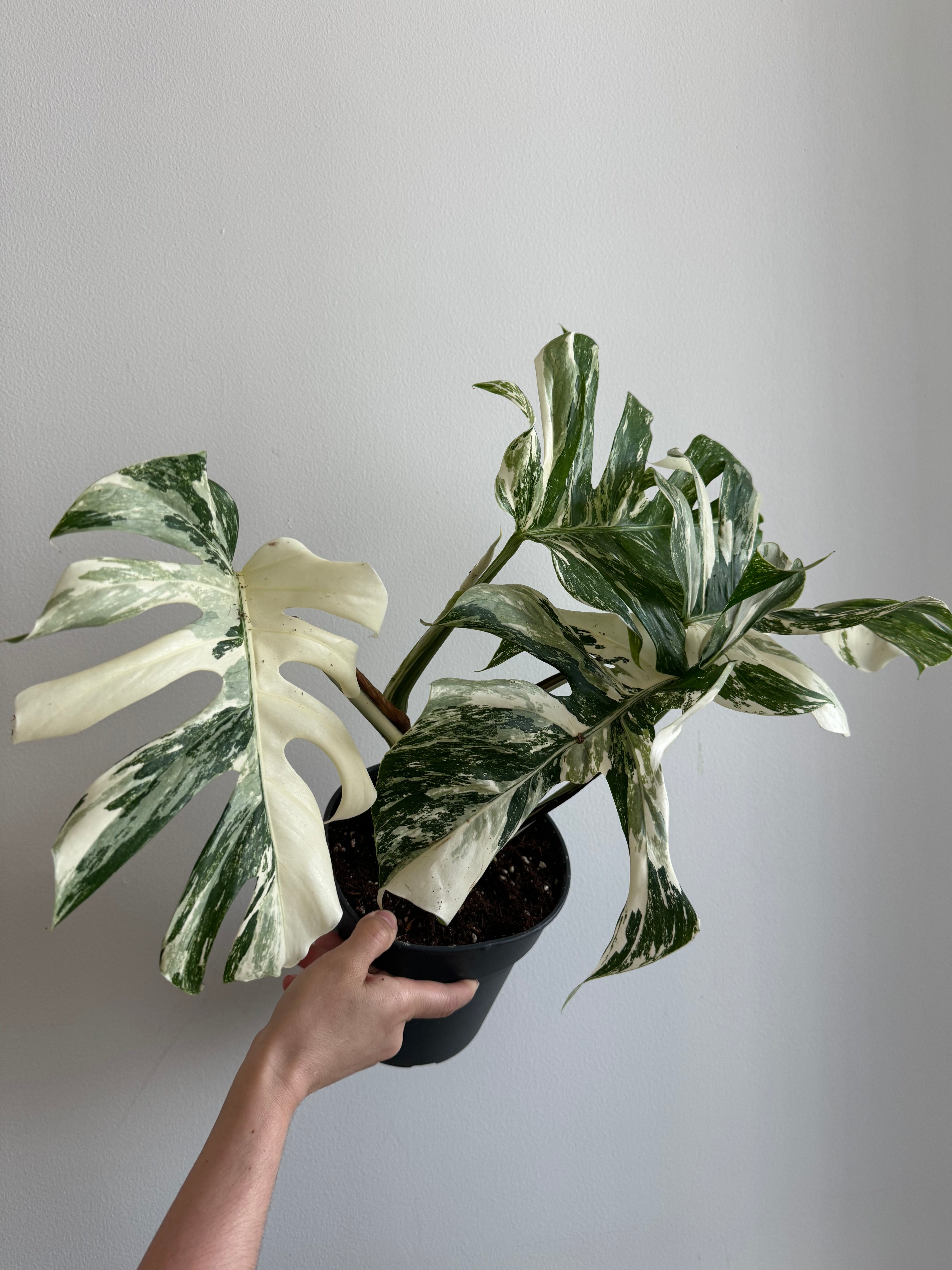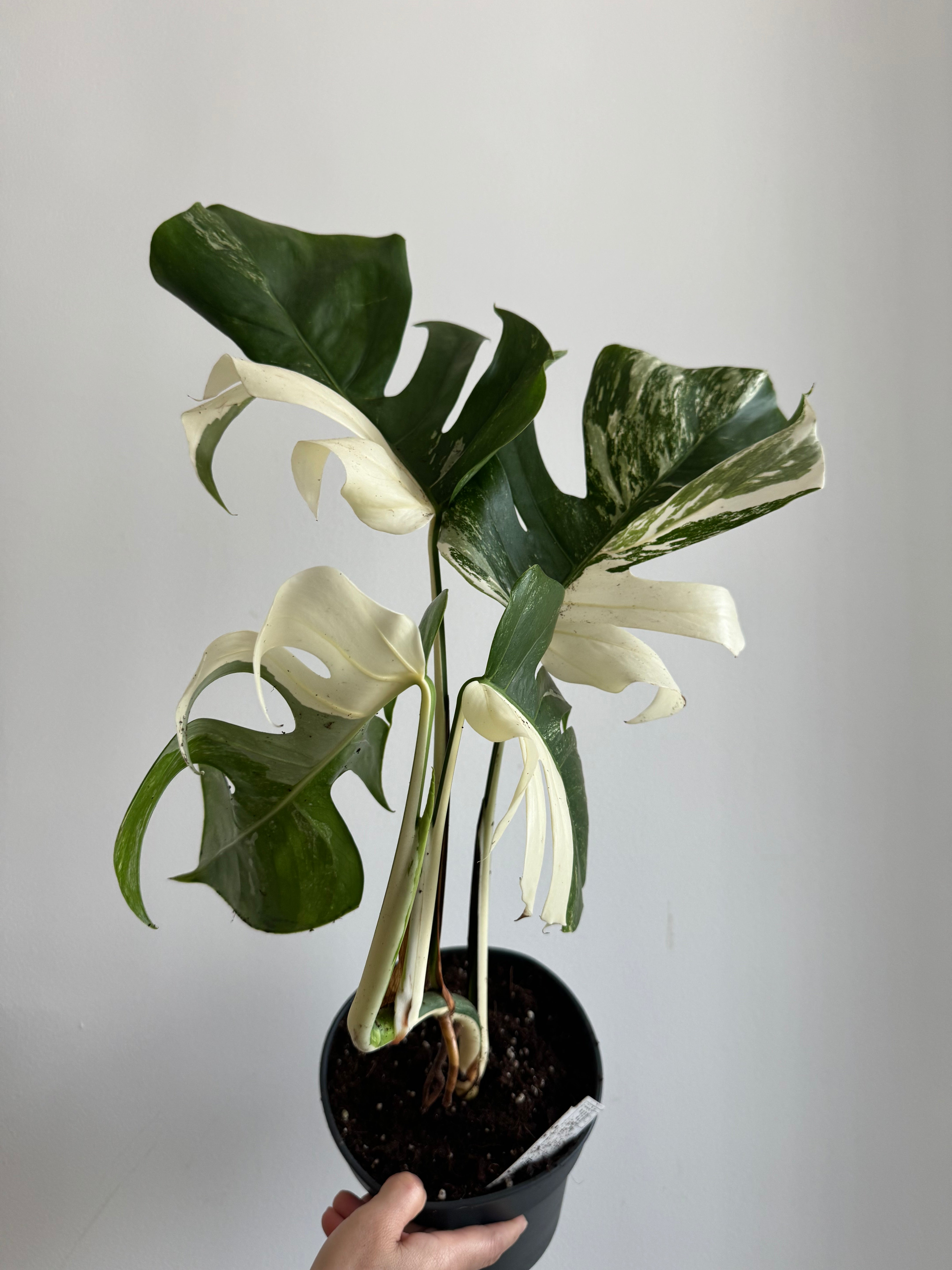 The Monstera albo, also known as Monstera deliciosa 'Albo-Variegata', is a stunning variety of Monstera deliciosa, characterized by its striking variegated foliage.
