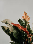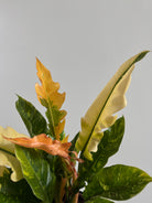 Philodendron ‘Ring of Fire’ is a rare hybrid believed to be a cross between Philodendron wendlandii and Philodendron tortum.