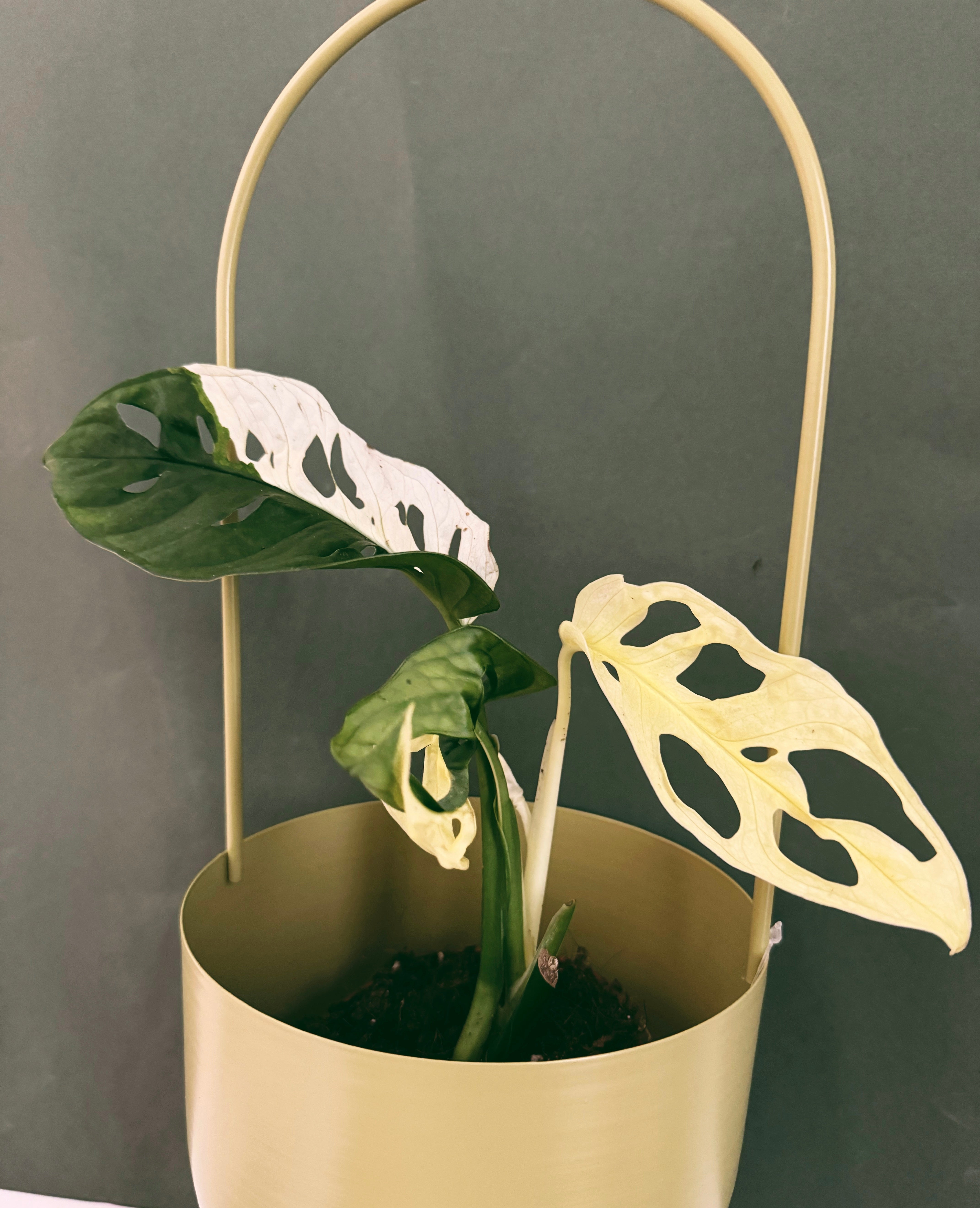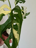 The Variegated Monstera adansonii has leaves that are typically heart-shaped and deeply lobed, similar to the non-variegated variety. However, what sets it apart is the presence of variegation in the foliage. Variegated leaves have patches, streaks, or marbling of different colors, often featuring shades of green, white, and sometimes yellow. The variegation adds a striking and unique aesthetic to the plant.