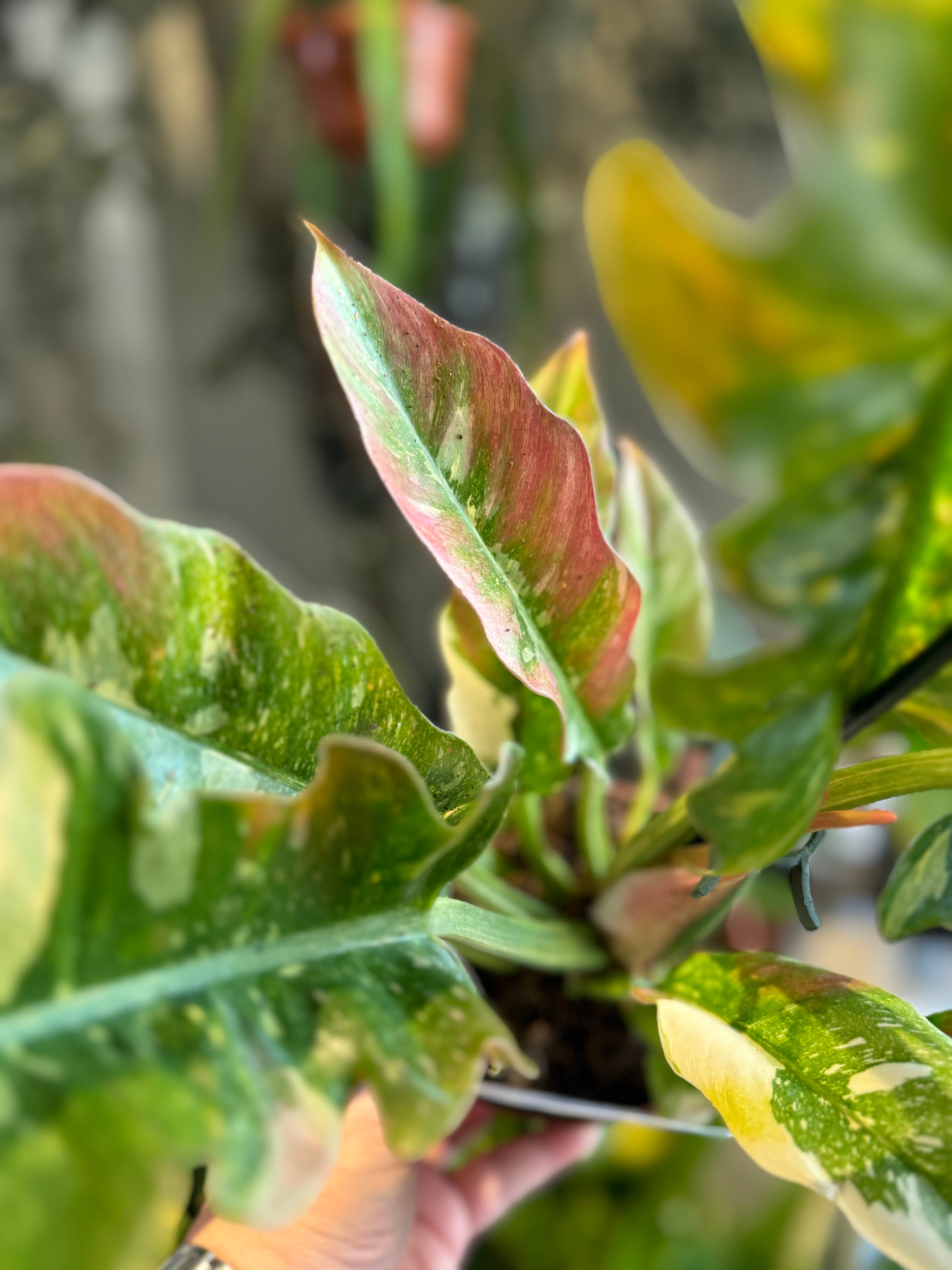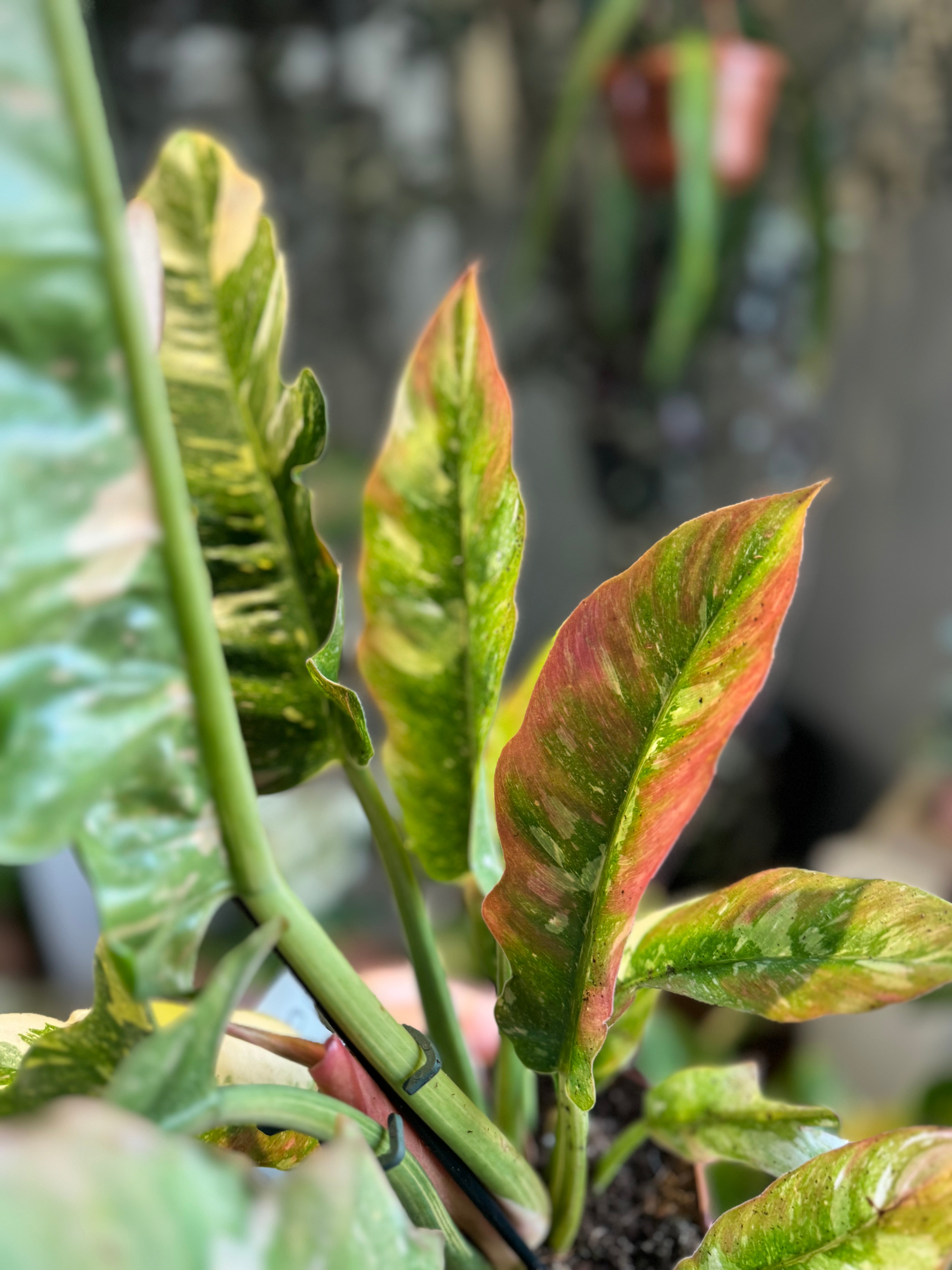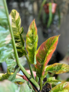 Philodendron Ring of Fire is one of our favorites. The variation of colors on the new leaves can range from white to cream to light green to dark green. This is a slow-growing philodendron but well worth the wait.