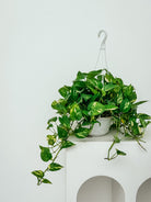 The Epipremnum Aureum has large glossy green and yellow leaves that brighten up any space and purify the air. The Golden Pothos also tolerates lower light levels without losing its variegation and looks best displayed as a hanging plant.