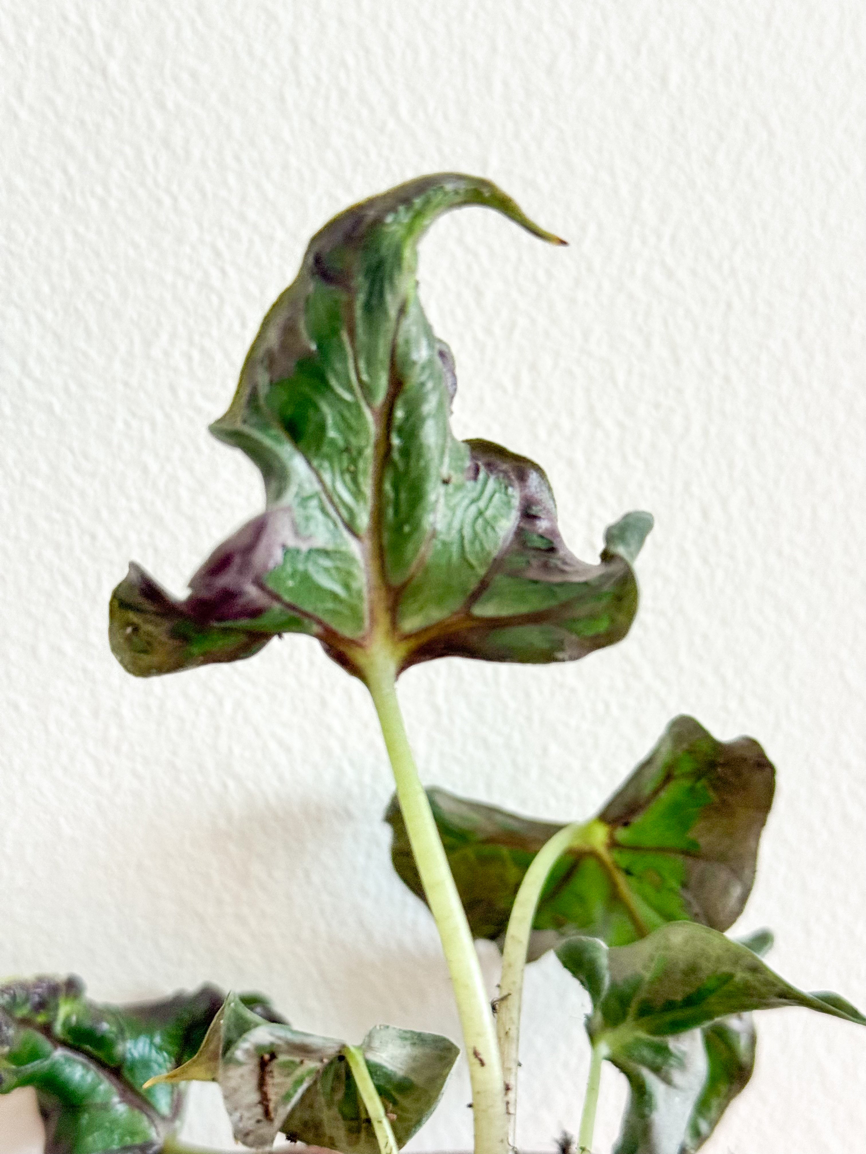 Alocasia Loco" is a stunning and somewhat rare cultivar of Alocasia, known for its bold, arrow-shaped leaves and vibrant veining—sometimes showing silvery or purple hues. Like other Alocasias, it can be a bit finicky but rewarding with the right care.