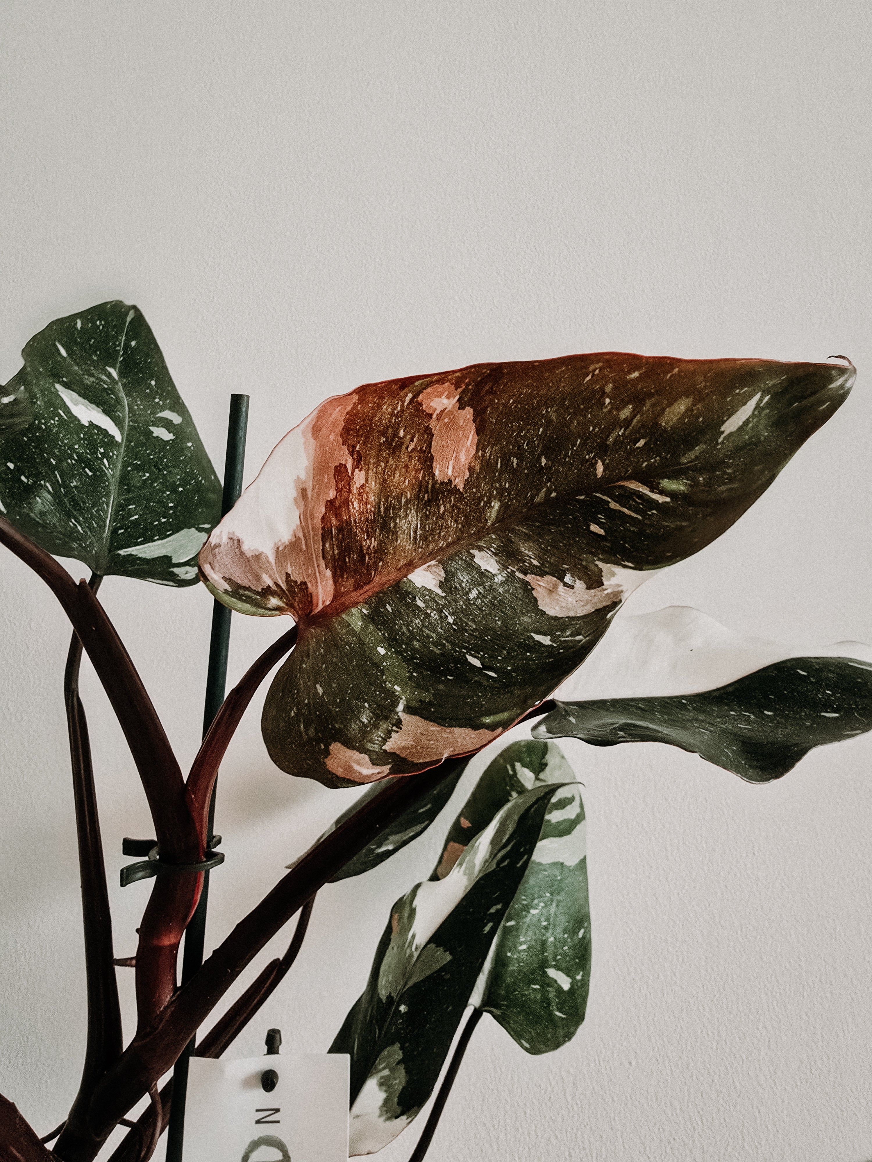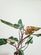 Philodendron ‘Red Anderson’—a stunning variegated hybrid known for its rich red, burgundy, and cream-toned foliage.